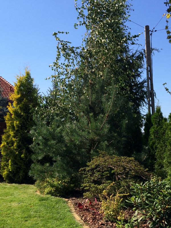 posadziłam za sosenką. Na razie ma świetlisty cień, ale będę usuwać dolne gałęzie sosny i co roku odsłaniac pień o jedno piętro, tak więc chwilę musi wytrzymać.. Będzie jej tu dobrze, bo tuje się ładnie rozrosną i zrobią jej zielony parawan od mroźnych wiatrów.