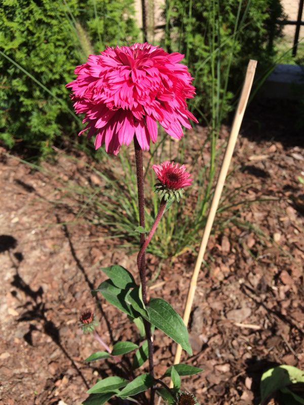 w transporcie nadłamałam jeden z kwiatków- oplotłam go dookoła głownego pędu i jak widać rozwija się dalej- cóż za miła niespodzianka.. jeżówka ma 4 kwiaty, więc każdy cenny