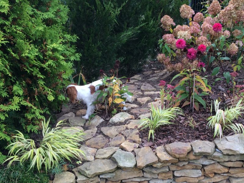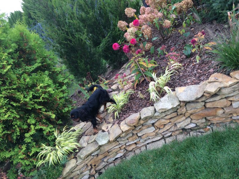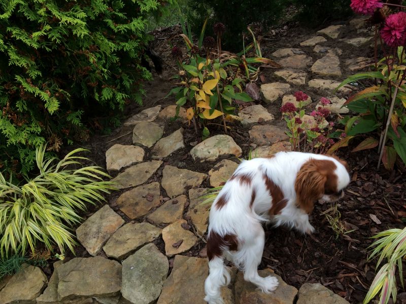 Ułożenie ścieżek jest konieczne- dzięki temu biegając nie osypują ziemi- do tej pory Limka miała odkopane korzenie, a z kolei rosnący obok jałowiec- zakopany pień