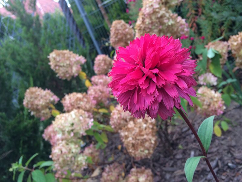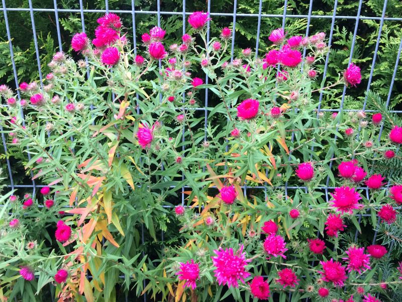 bardzo fajne te astry- nawet nieźle mi się przypadkowo skomponowały- wyglądają zza Limki przy płocie. Wiosną muszę jakoś je rozsadzić po obu stronach bukietówki. Ładnie pasują do jeżówek i takie są żarówiaste, że aż miło popatrzeć w ponury jesienny dzień