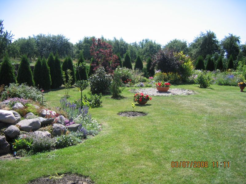W latach dziewięćdziesiątych gosp. przeszło na męża i na mnie, od razu postawiliśmy nowy dom i postanowiłam, że w około tego domu musi być ogród. Nie od razu zagospodarowałam przeznaczone miejsce roślinami gdyż na ogród nie miałam wolnego czasu więc musowo było zasiać trawę.