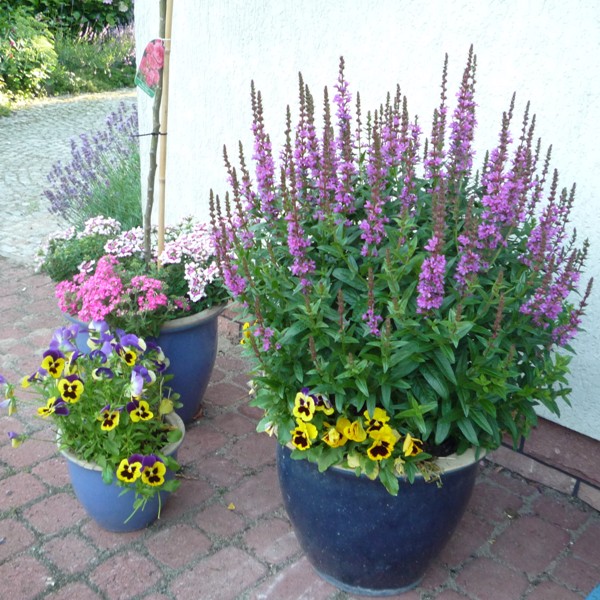 Moje nasadzenie w donicach przed wejściem do domu .Polubiłam tak te zestawy ,że już drugi rok nic się u mnie nie zmienia mówię o roślinie