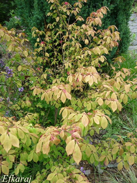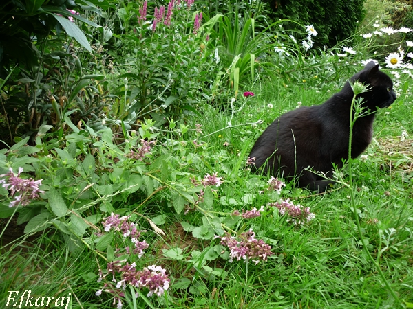 Kwitnie też tojeść orszelinowa, ale coś się pokłada. Pewnie też ma za mało słońca, choć w całkowitym cieniu nie rośnie.