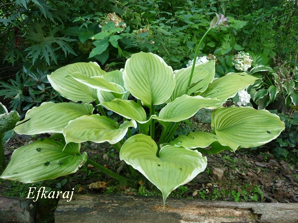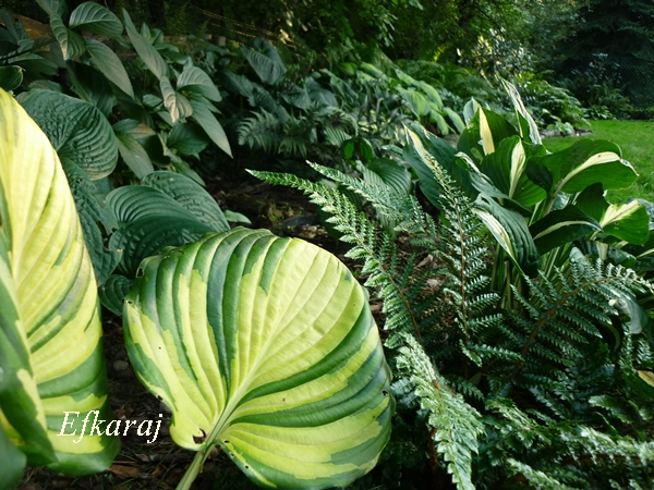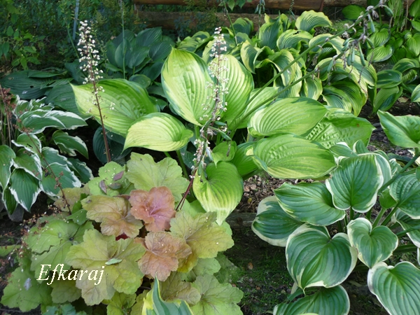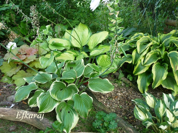 Widać już na hostowisku zbliżającą się jesień. Hosty rozkładają liście na boki i jak co roku o tej porze, są nieco nadgryzione...