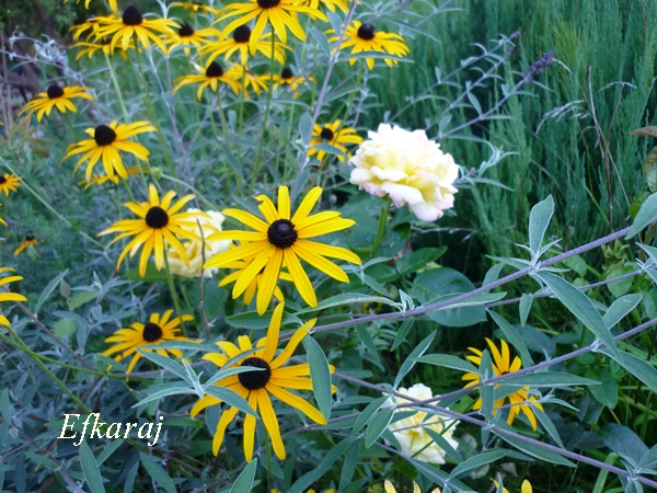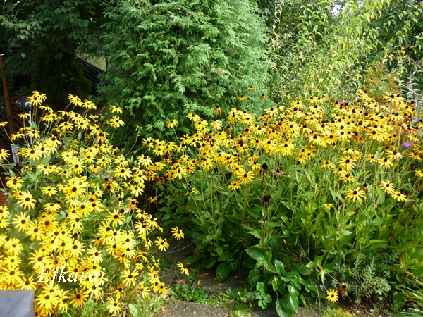 W nocy znów popadało, ale umiarkowanie. Na tarasie co prawda woda stała, ale do popołudnia wszystko wyschło i mogłam skończyć kosić. Wczoraj małżonek skosił środek, więc przejechałam brzegi rabat.