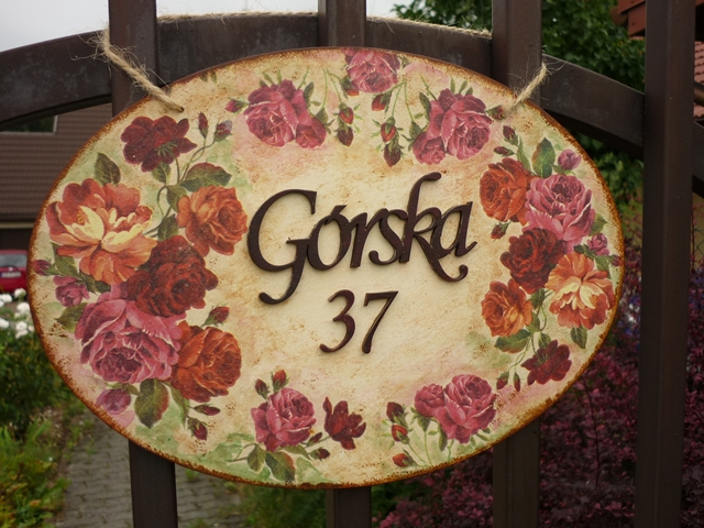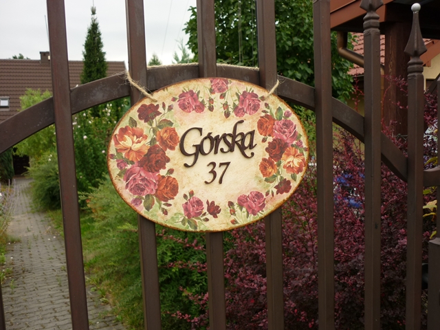 Pomijając braki na mojej wsi, to wysunęliśmy się jednak szczebel wyżej i nadali nam ulice. Zrobiłam szyld na bramkę