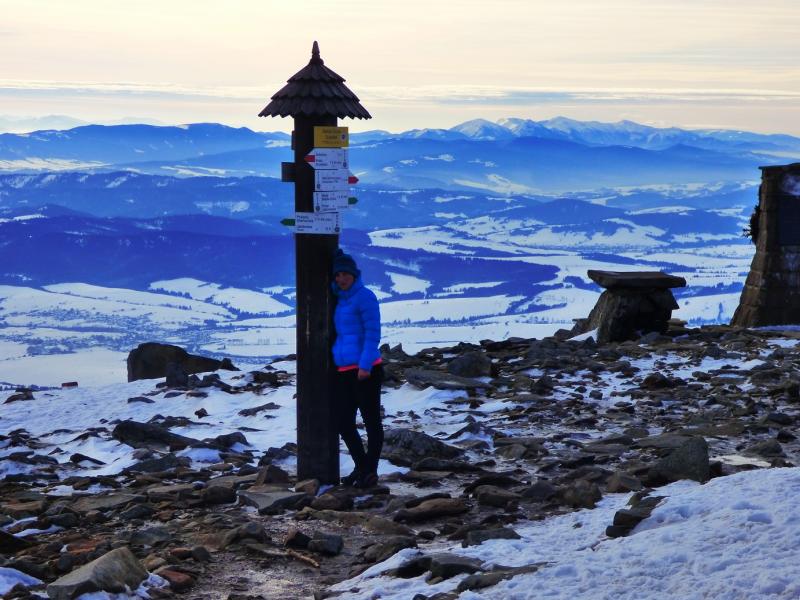 Więc kiedy poszedł w poniedziałek do pracy to ja sama wybrałam sie na zachód słońca na Babią,miałam stracha na szczycie bo strasznie wiało i było bardzo slisko.