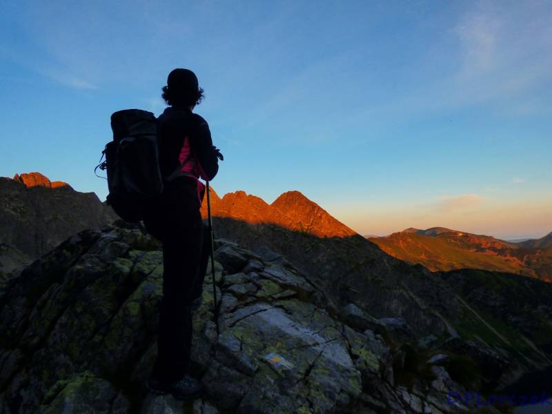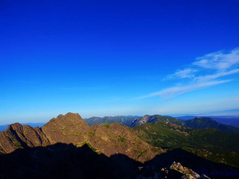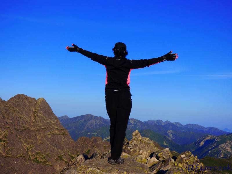 Niebo było bezchmurne w miarę ciepło,bezwietrznie idac do góry podziwiałam potęgę gór,nikogo nie było na szlaku zdobywając szczyt byliśmy najszczęśliwszymi ludźmi na świecie,dodam jeszcze to że w piątek spadło w Zawoi 60 l,wody i myślałam że w Tatrach też,znajoma dołożyła w piątek wieczorem zdjęcia i okazało sie że przeszła po szlakach 10 h i nie padało,a najwięcej wypadków jest przez śliskie skały,więc nie poszlibyśmy w góry.