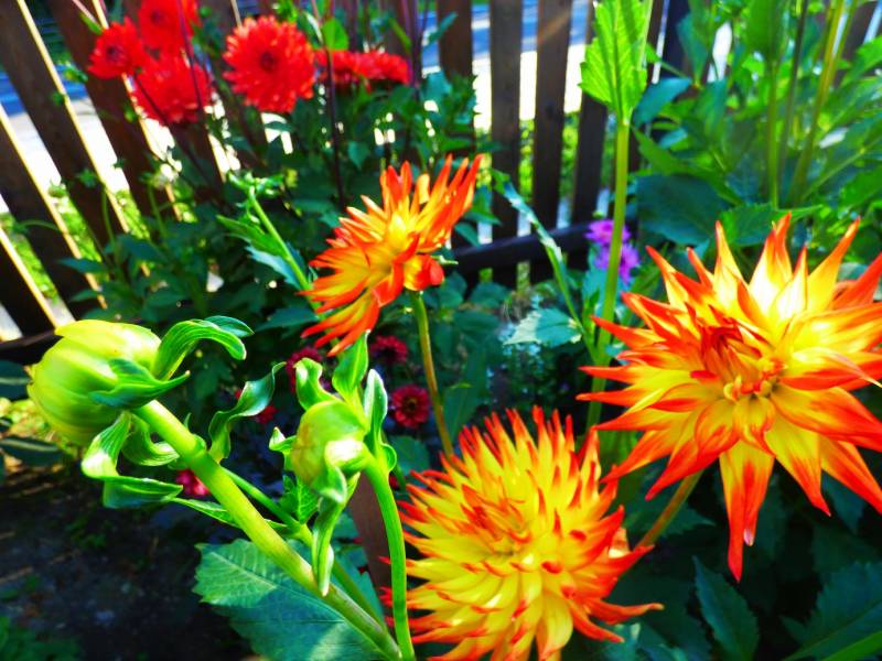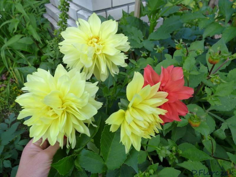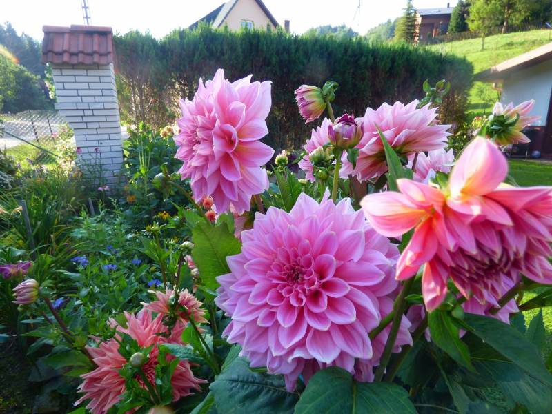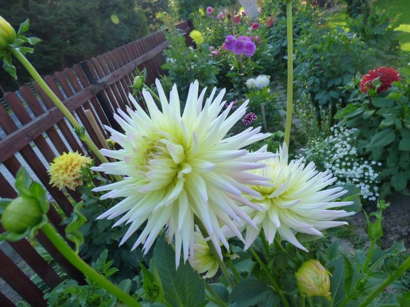 na razie w małych ilościach ale są,Dalie teraz królują w moim ogrodzie nie wyobrażam sobie zycia bez nich,a te z duzym kwiatem są najpiękniejsze.U mnie od kilku dni intensywne opady deszczu dziś miałam stracha bo sypnęło gradem,kilka płatków lili i liliowców obiło,dzięki Bogu daliom nic się nie stało,po burzy pobiegłam do naszej figurki w ogrodzie i Matuli podziękowałam.