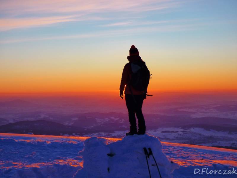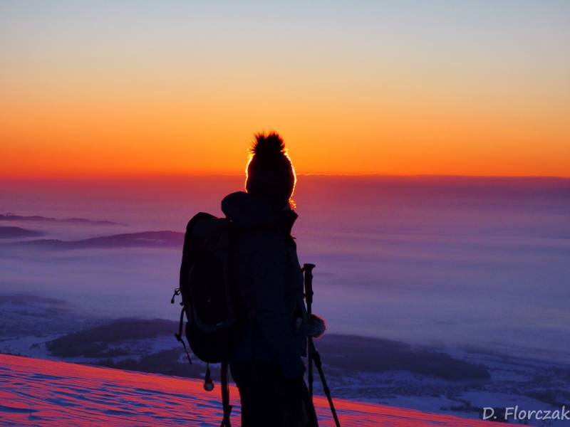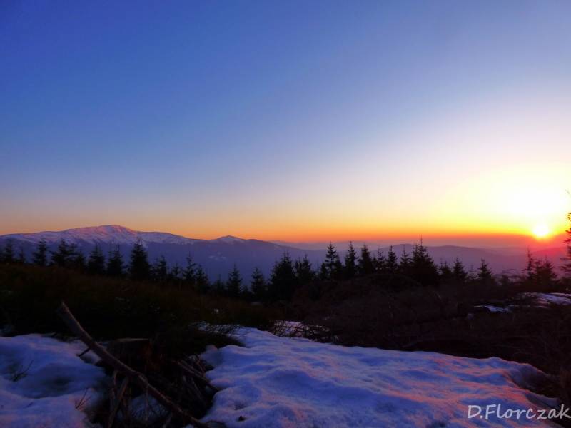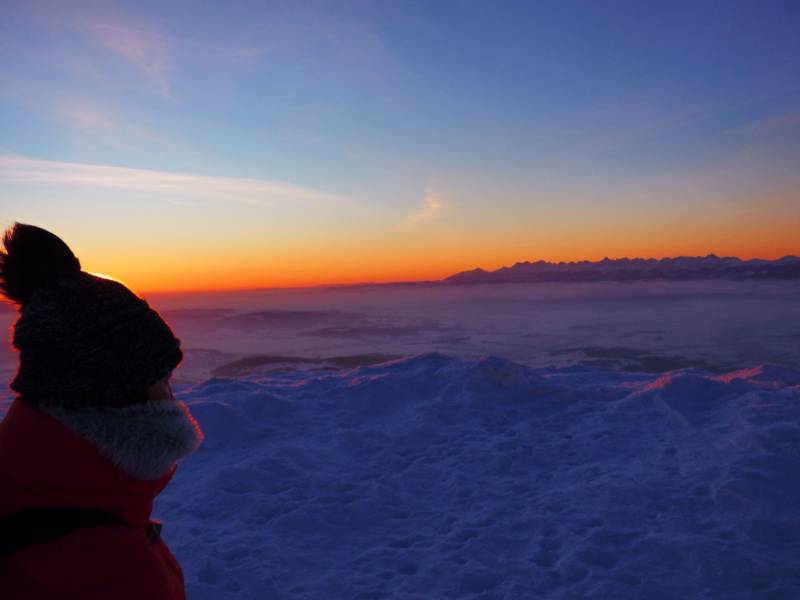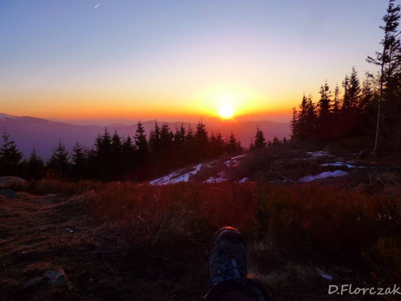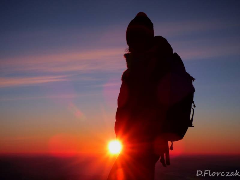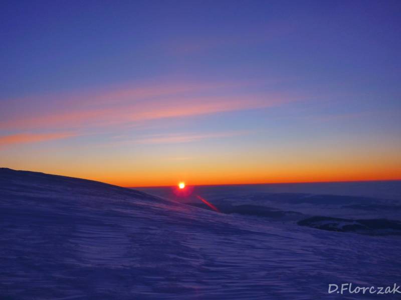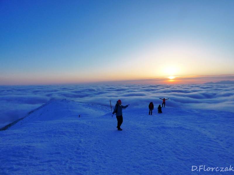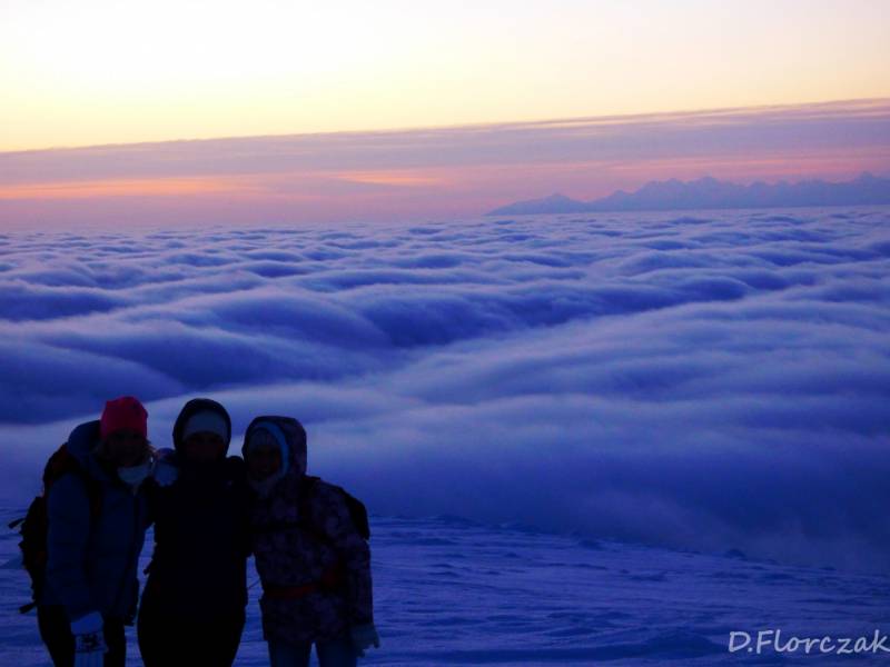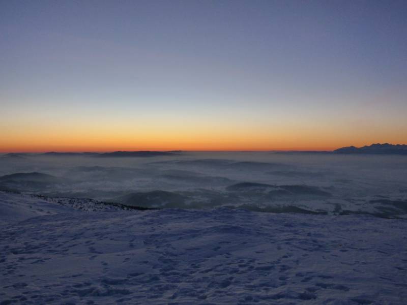 Od Kępy dzień zaczął się budzić i jest to najpiękniejsze zjawisko na ziemi,przejrzystość powietrza niesamowita przed szczytem zaczęło wiać Tatry na wyciągnięcie reki my podziwiamy pierwsze wynurzenie słońca a wszyscy mega turysci tak zmarzli na szczycie ze zamiast podziwiać to,po co przyszli to zajęci byli rozgrzewka