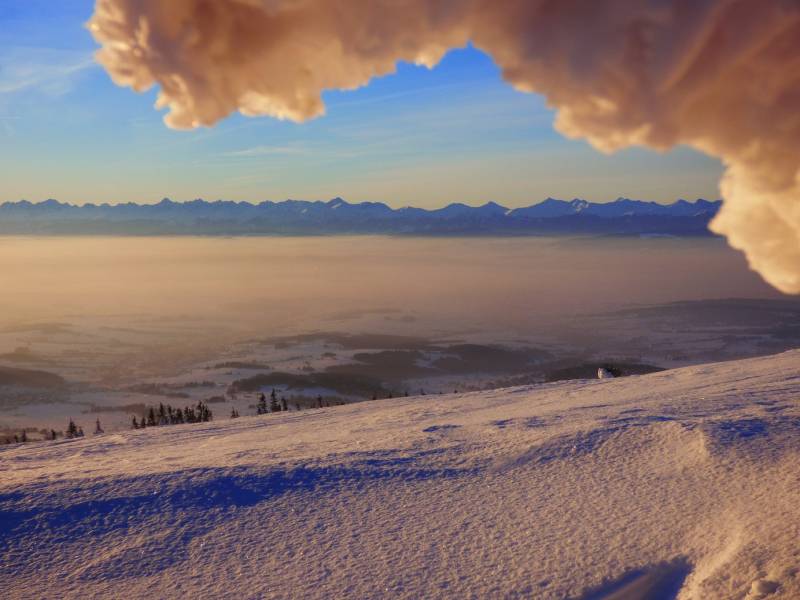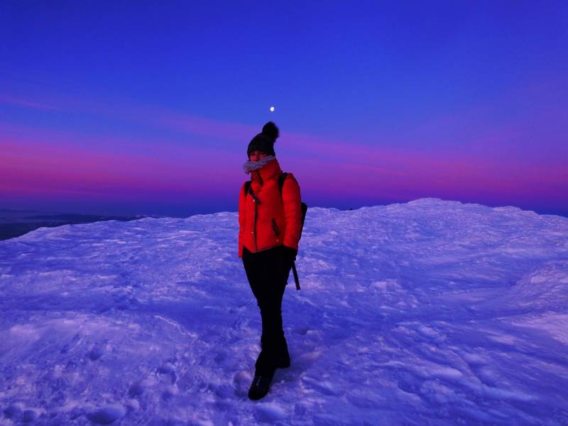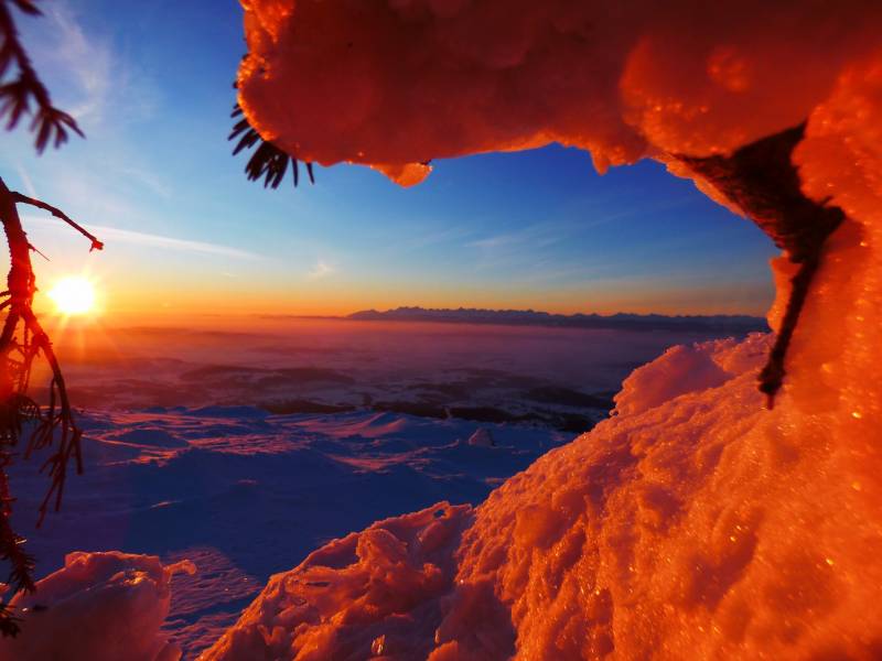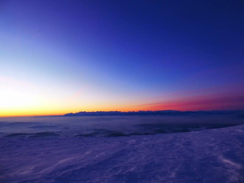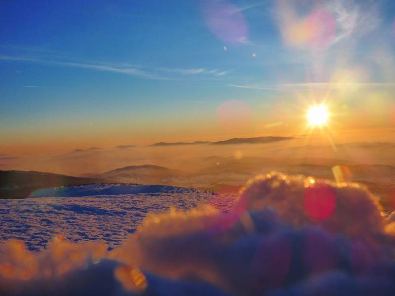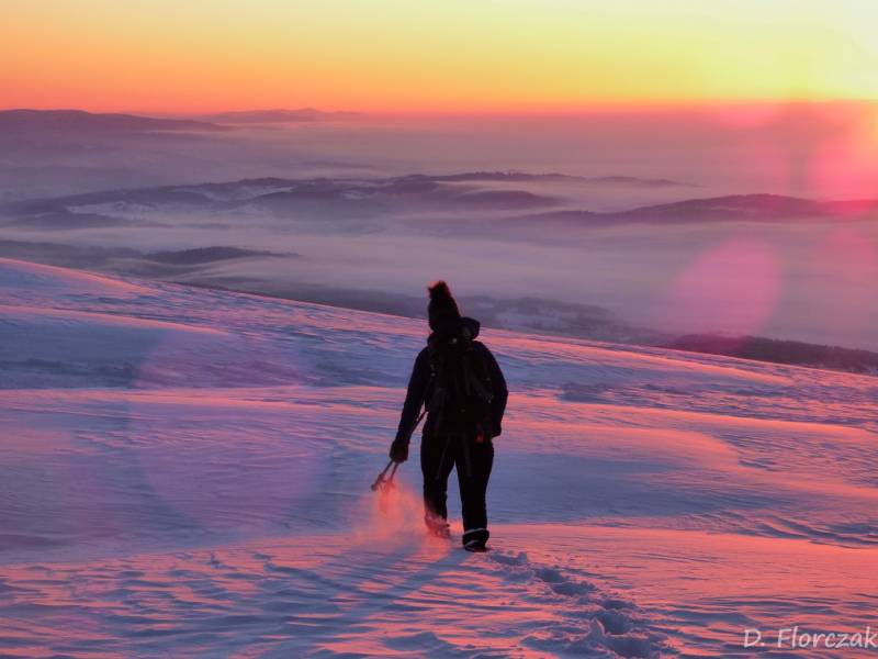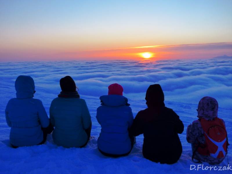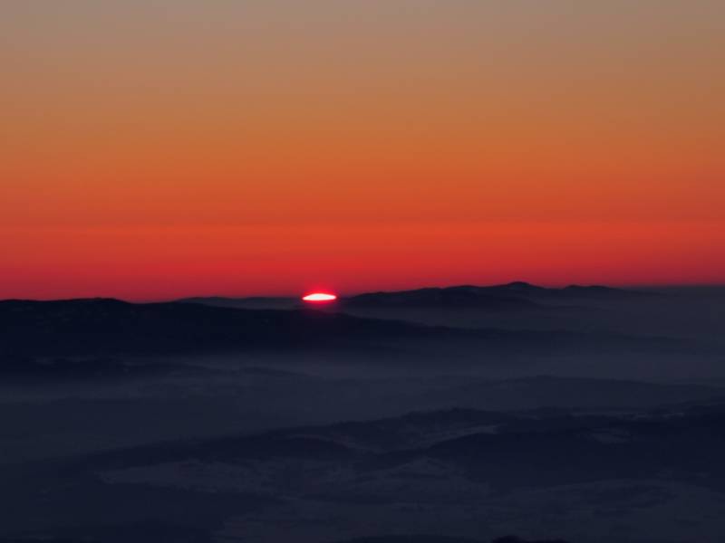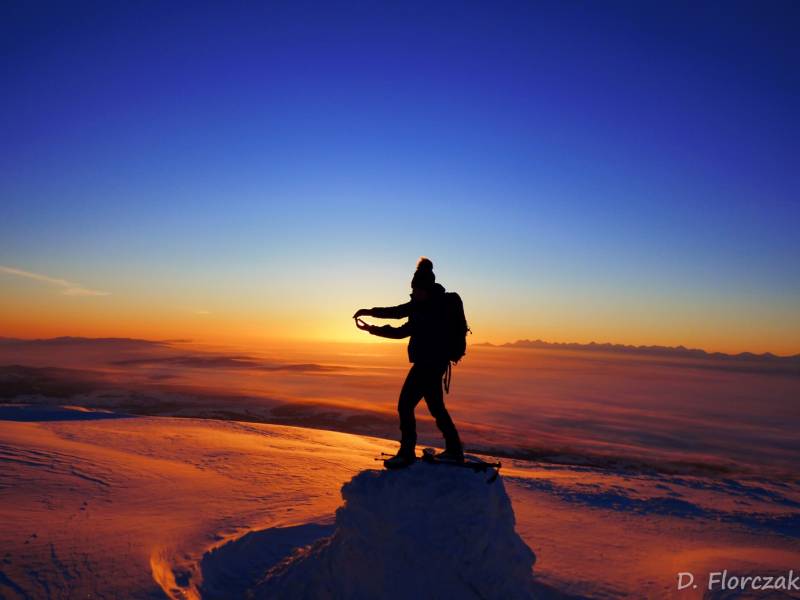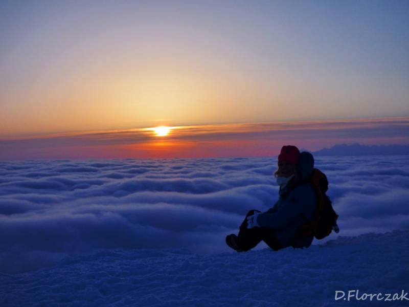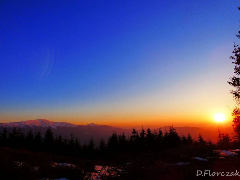 Od Kępy dzień zaczął się budzić i jest to najpiękniejsze zjawisko na ziemi,przejrzystość powietrza niesamowita przed szczytem zaczęło wiać Tatry na wyciągnięcie reki my podziwiamy pierwsze wynurzenie słońca a wszyscy mega turysci tak zmarzli na szczycie ze zamiast podziwiać to,po co przyszli to zajęci byli rozgrzewka