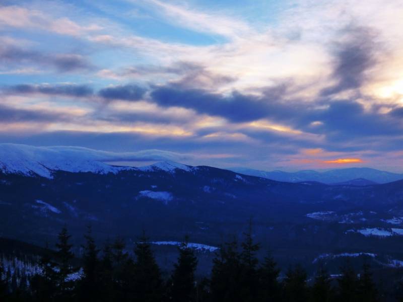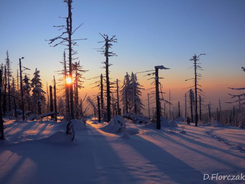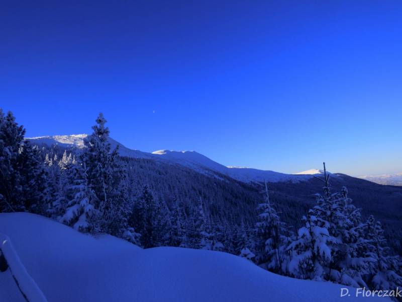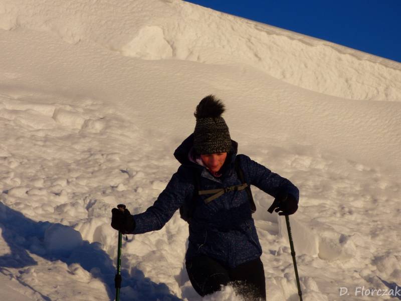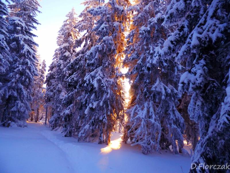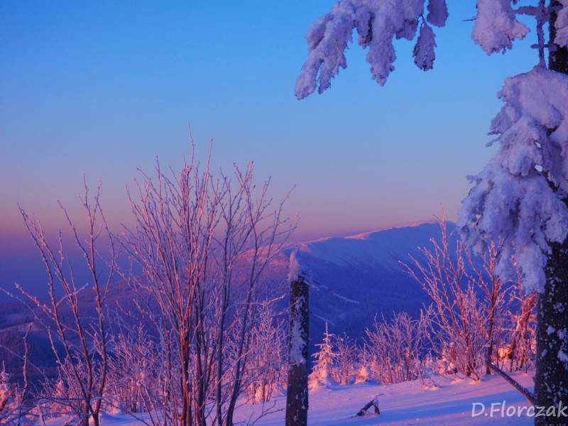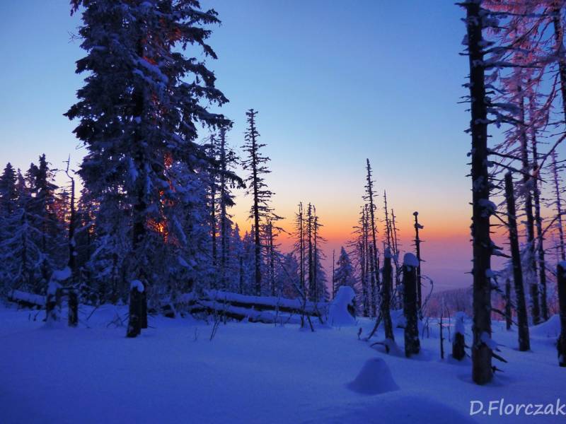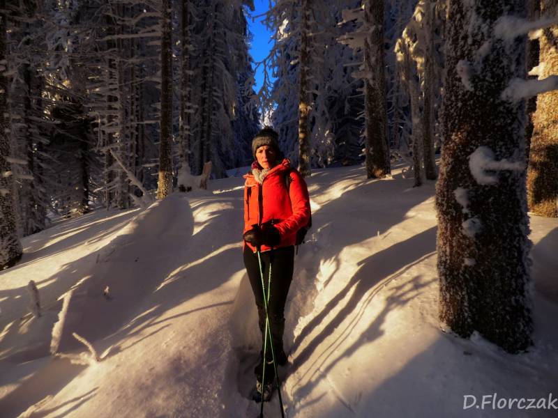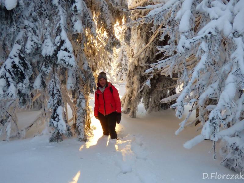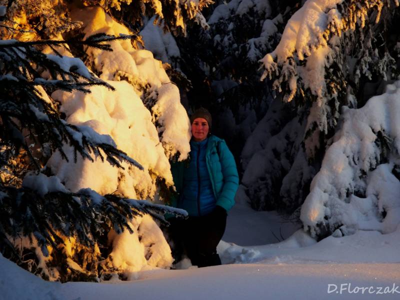 we czwartek rano pobudka przed 3 niebie wyjaśnione mróz -12 st i poszłam sprawdzić swoja kondycję przed EDK .O 3 wyruszyliśmy na szlak w dwóch samochodach kilkoro turystów się przebierało do wyprawy na Babią ,my wolnym ale stabilnym krokiem,ruszyliśmy na szlak,bylo zimno ale nie tak bardzo jak ostatnio.Trzech turystów minęlo nas szybkim krokiem,zastanawiałam się po co tak pędzą,natomiast małżeństwo młodsze od nas też nas wyprzedziło w takim tępie że pomyślałam hola,hola