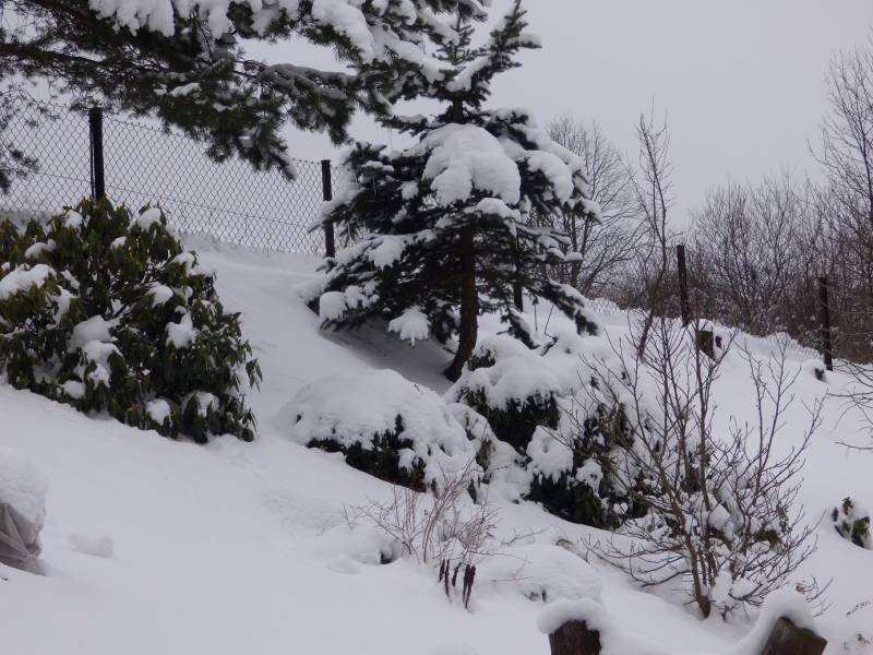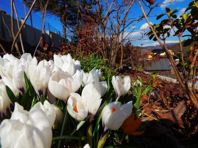zimowo zrobiło się w górach,rok temu o tej porze miałam wszystkie krokusy rozkwitnięte a w tym roku zaledwie dwa kwitną,śniegu troszkę jeszcze i leży i prószy,szpaków ciągle brak