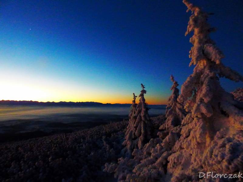 11 listopada razem z mężem poszliśmy świętować na Babią,ale wschód podziwialiśmy z Kępy bo halny nie pozwolił na widoki ze szczytu,bo było mleko.