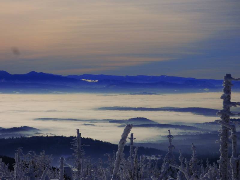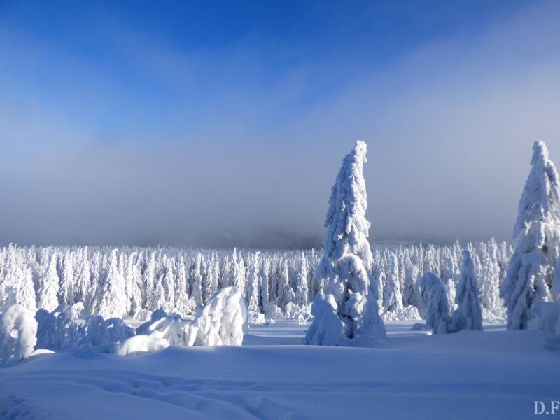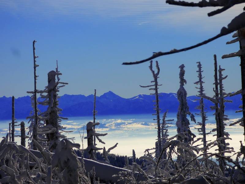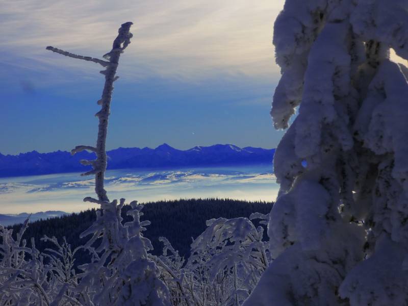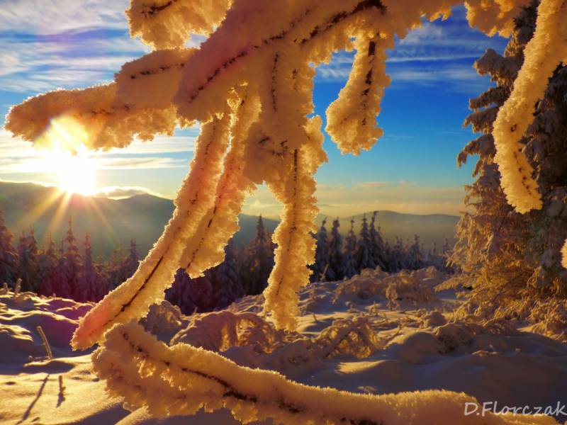 Zimę mamy piękną bo śnieg jest,i mgła otula wszystko na drzewach zrobiło piękna szadź,ale czasu teraz na wędrówki brak.