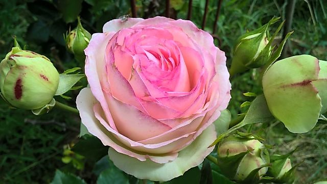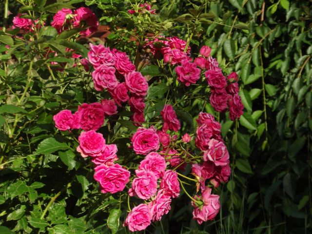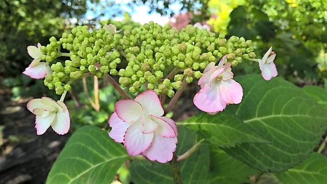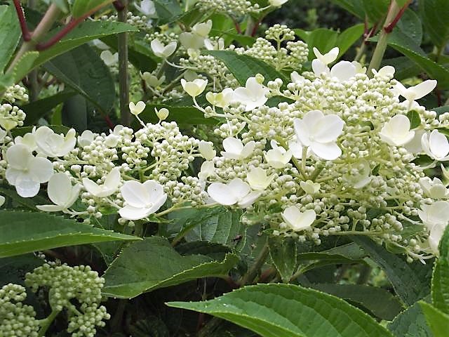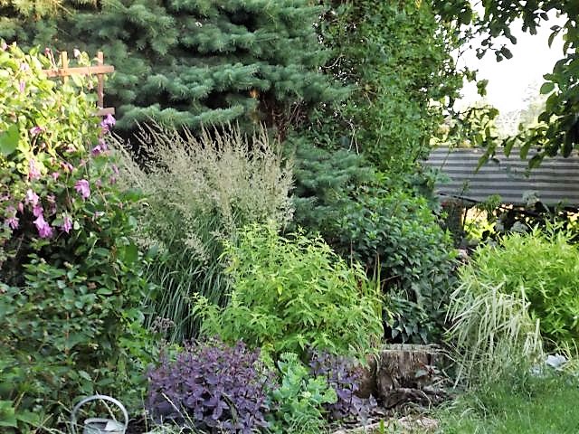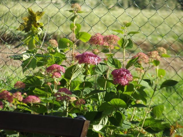 W ogrodzie szaro, buro bo niewiele roślin kwitnie. M nagle wczoraj po kilku latach tłumaczenia, że te jego hortensje ogrodowe to porażka, stwierdził, że na jego rabacie trzeba zacząć sadzić bukietówki bo ma tam zielone liście kolejny rok............To dopiero odkrycie poczynił. Ciągle mu mówiłam, że nasz ogród to złe miejsce dla hortensji ogrodowych, ale nie docierało, a już najbardziej mnie drażni jak przywleka do domu zdublowane odmiany tych liściorów. Oczywiście nastawia donic i zapomina, że trzeba to posadzić.