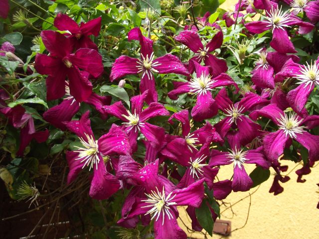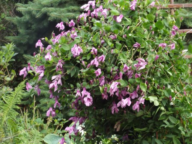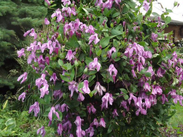 Powojnik Alionushka ledwie żyje po nawałnicach deszczowo wietrznych.