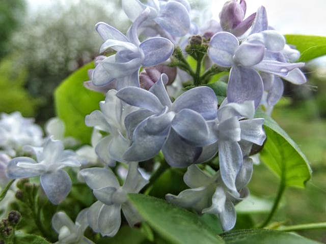 Lilak Niebo Moskwy o pięknych, skręconych płatkach i delikatnym odcieniu błękitu.