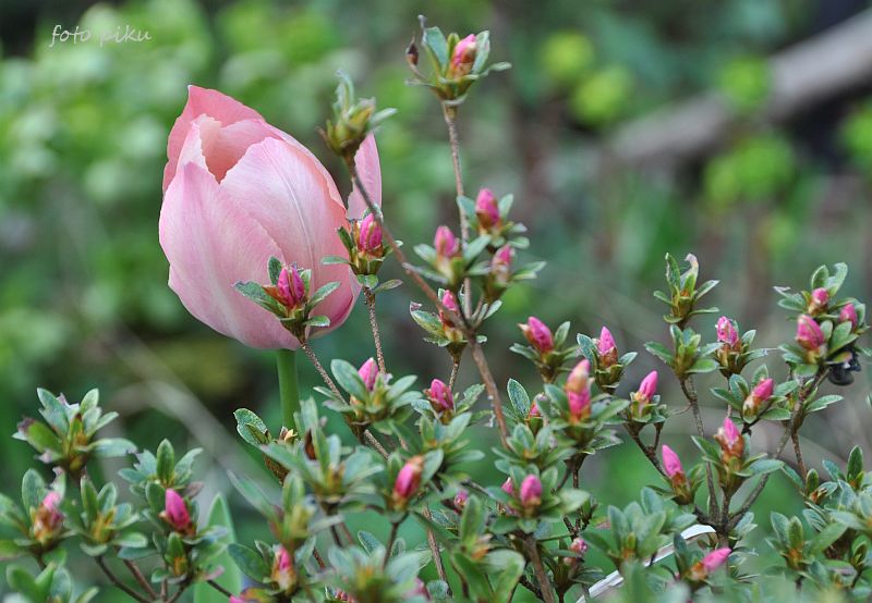 Soniu, to jedyny taki szybki różanecznik, pozostałe jeszcze się nie spieszą B) , a pierisy mają już swoje lata więc popisują się rozmiarem :silly:
