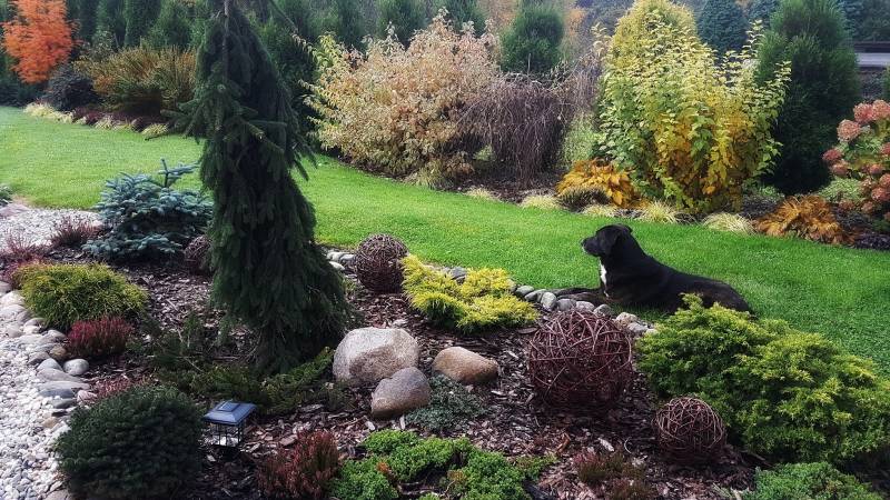 Edytko mój domek stoi mniej więcej w 1/3 działki na środku, położony na górce (za domem jest bardziej płasko) przed domem nachylenie terenu jest dużo większe. Plus jest taki, że rośliny mogą rosnąć niemal jak w amfiteatrze, ale koszenie trawy już takie komfortowe nie jest. W dodatku po ulewnych deszczach i na wiosnę z lasu spływa woda i na samym dole działki robi się bajoro i błoto nie do przebycia - w planie mam ogarnięcie tego w tym roku. Ziemia też jest bardzo różna. Pod lasem kiedyś była uprawiana i tam jest dobra, żyzna próchnicza, ale im bliżej domu robi się bardziej ciężko, gliniaście. Przed domem i z boków domu sama glina, w którą latem nawet szpadla nie wbijesz, bo zbita w kamień. Zagospodarowałam prawie 20 arów, na tej lepszej ziemi. Do ogarnięcia jeszcze teren przed domem (ok.5 arów) - wąski strumyk (rzeka Nacyna)- o jej obsadzenie staram się od zeszłego roku w Zarządzie wód i rzek (bo choć płynie na moim terenie to sadzić nic nie wolno na 1,5 m od brzegu!), podjazd do domu, skarpę przed domem już obsadziłam - głównie zróżnicowane teksturami iglaki, bo to północ) i "łączka" na glinie, gdzie nawet chwaściana trawa nie bardzo chce rosnąć... tu jeszcze muszę pomyśleć, co z tym zrobić. Pomysłów mam kilka...