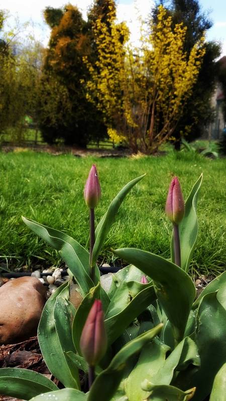 Piwonie drzewiaste są 2, posadziłam je razem, ale mysle czy jednak nie posadzić ich w dwóch różnych miejscach. Póki jeszcze nie zapuściły korzeni głębiej. Z jednej strony szybko bym chciała mieć większy krzaczek, a z drugiej... byłyby dwie, choć mniej okazałe. Kwitnienie zapowiada się wielkimi kwiatami! Pąki są naprawdę grubiuskie...