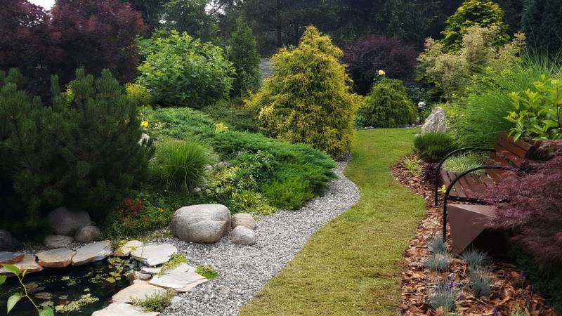 Sercem ogrodu jest wielki staw, do którego wpływa chyba ze 150 maleńkich strumyczków i cieków. Jest niemożliwie naturalistyczny, miejscami wygląda na zaniedbany, ale nic bardziej mylnego - nawet rośliny "spontaniczne" są tu pod kontrolą