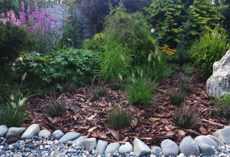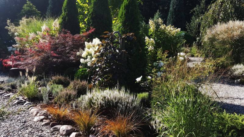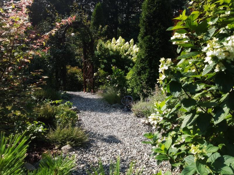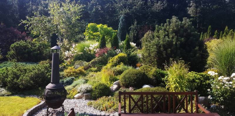 Strasznie jestem słaba, no i rzecz jasna muszę się do wszystkiego zmuszać, ale za to potem jak już wpadnę w trans to zeszło mi dziś aż do południa! Wykorzystując że mokro i chłodniej (przynajmniej do południa tak było, bo teraz znów piekarnik) musiałam przesadzić kilka roślin, a to hostę którę źle posadziłam wiosną i nie było jej teraz widać, a to jarzmianki, bo za duże i gryzły się z onokleą... pod łopatę poszły 3 boniki, które zawsze chorowały, ale w tym roku to już przesadziły. Trzeba było jeszcze trochę ogarnąć mini wrzosowisko (to stare, gdzie mnóstwo wrzosów wymarzło) część się jednak jakoś pozbierała, a część z tych którym jeszcze dałam szansę jednak strasznie wyszczurzała, więc też poszły won. I tak zleciało aż do obiadu!