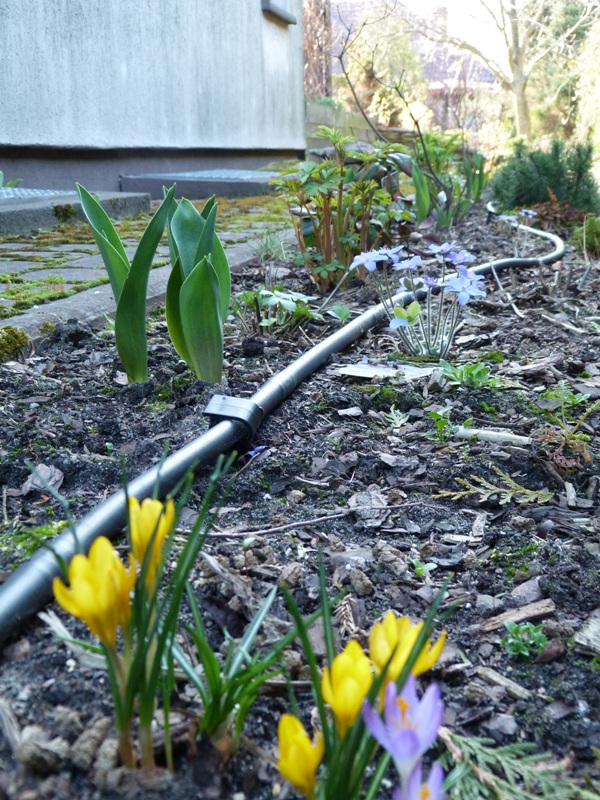 Na rabatach faktycznie leżą węże do podlewania, ale nie automatycznego. Do tych węży podłączam zwykły wąż ogrodowy wtedy kiedy chcę podlewać. I tak ułatwia mi to życie, bo nie musze stac i podlewać, samo sie leje, tylko musze pamiętać o zakręceniu wody na noc gwizdac