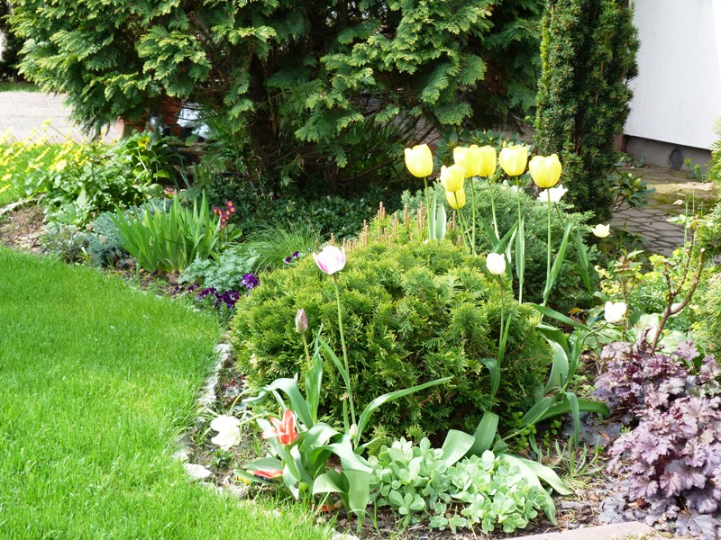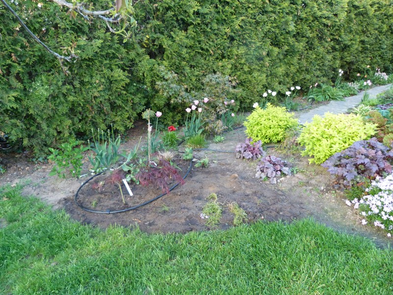 Z tym rododendronem to były tylko rozważania. Może posadzę jakiegoś niewielkiego iglaczka? Chciałabym coś zimozielonego, bo wokól wszystko zrzuca liście.