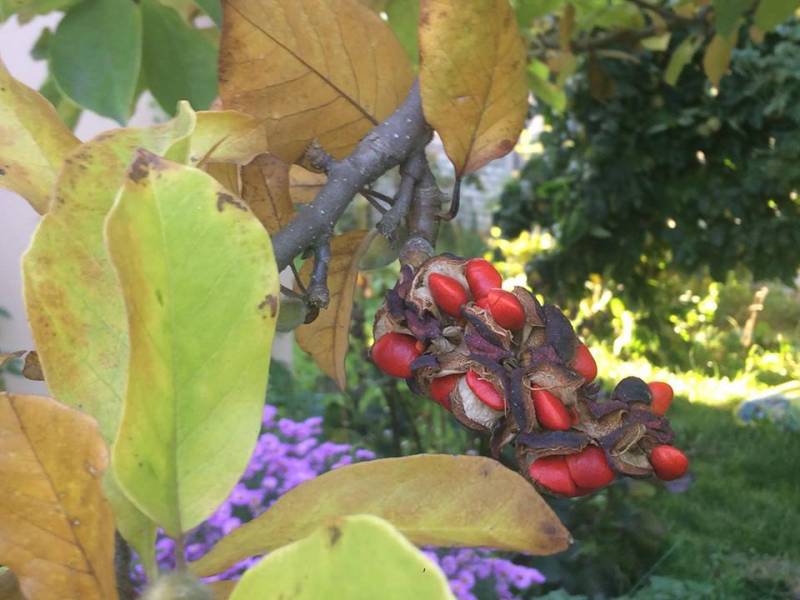Magnolia 'Rogów' wytworzyła sporo nasion