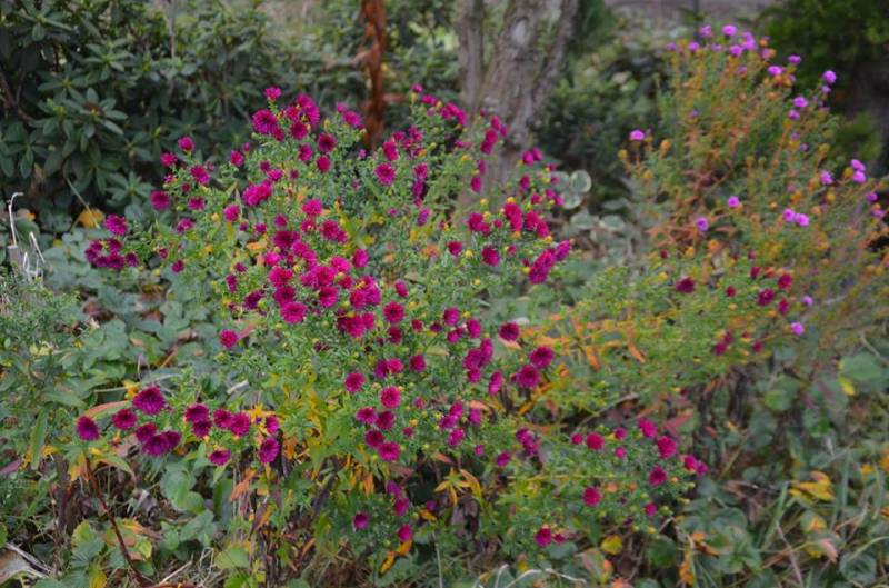 "Normalne" marcinki już przekwitły, a te jakieś takie bardzo późne. No i nie wiem, co to za odmiana bo były kupione na przecenie w jakimś markecie późną jesienią 2016 r. Myślałam, że to jakaś niska odmiana, ale już w 2017 urosły mocno, ale nie zdążyły normalnie zakwitnąć, bo zrobiło się zimno. W tym roku to już rośliny całkiem okazałe i pięknie kwitną dzięki tej ciepłej pogodzie, którą ostatnio mamy. Zobaczymy, co będzie w przyszłym roku