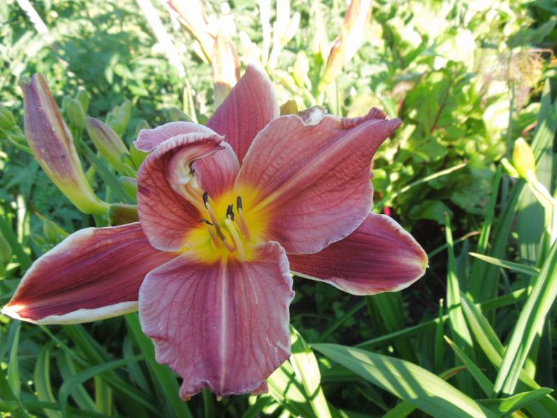 Floks Becky Towe ,irys luizjański ,irys mleczny,,serduszka aurora,ciemiernik cuchnący,Iris versicolor Dark Aura ,powojnik Mme Le Coultre,narcyz wonny poeticus-2szt.przetacznik Christa, rozchdniki Surrender Red i Pool Party,liliowiec Kwanso,jarzmianka Claret-2szt.,języczka Britt- Marie Crawford, Hakonechloa macra i żurawka Ginger Ale ,szarobródek syberyjski -trawa,- to tak ku pamięci . Ewciu to ja zupełnie odwrotnie jak Ty wolę zamawiać a sadzić to już obowiązek ,ale zrobione niech rosną-zapomniałam zdjęcia zrobić ,ale spieszyłam się przed deszczem ,odkopałam też kilka irysów bo za głęboko siedziały ,,,,zakwitła w końcu moja rutewka i po obejrzeniu rutewek w watku Kondzia myślę ,że jest to Rutewka rochebrunianum 'Elin'