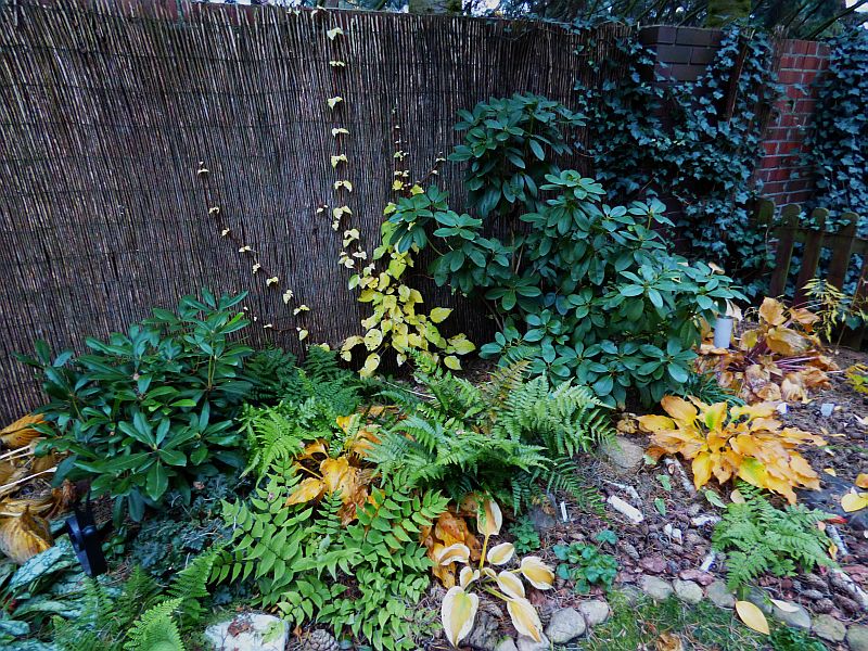 Części host już usunęłam liście i regenerują się po sezonie pod kołderką z kory i igliwia... część jeszcze się żółci w lepszej bądź gorszej formie.