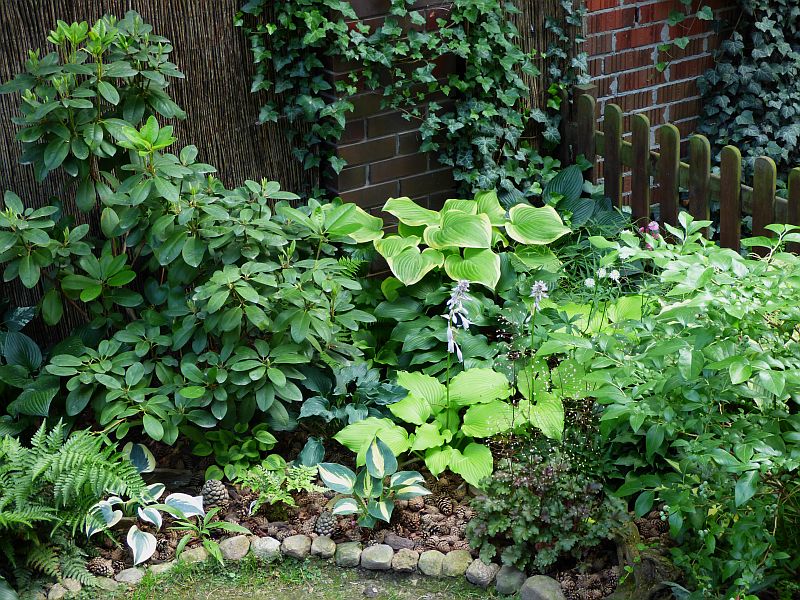 Obecna prezentacja borówkowych krzaczków 'Chandlera' w popołudniowym słoneczku i hosty 'Striptease' która tam właśnie znalazła sobie nową miejscówkę... tylko muszę jej zmienić towarzystwo po lewej, bo miodunki już w pyle mącznika