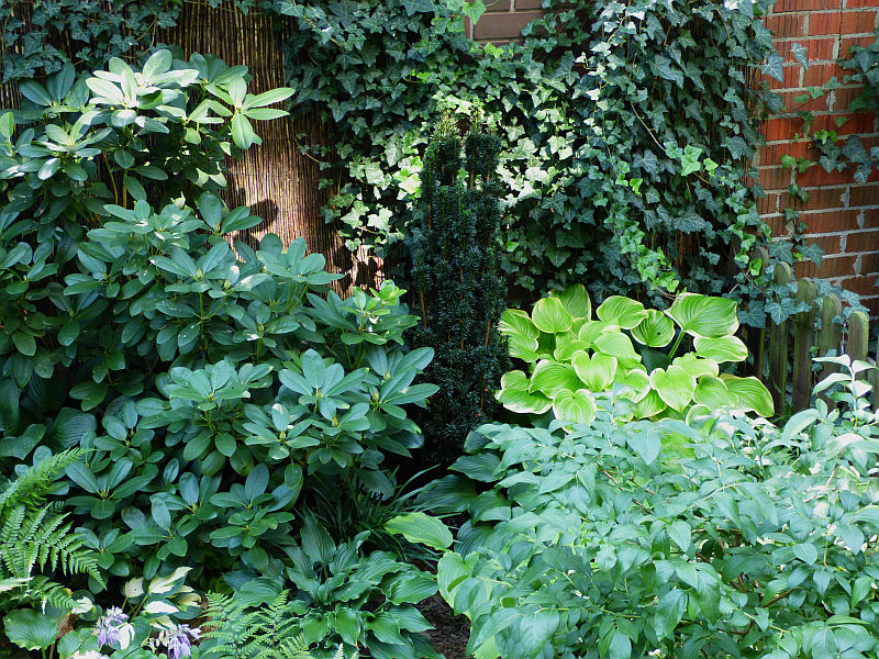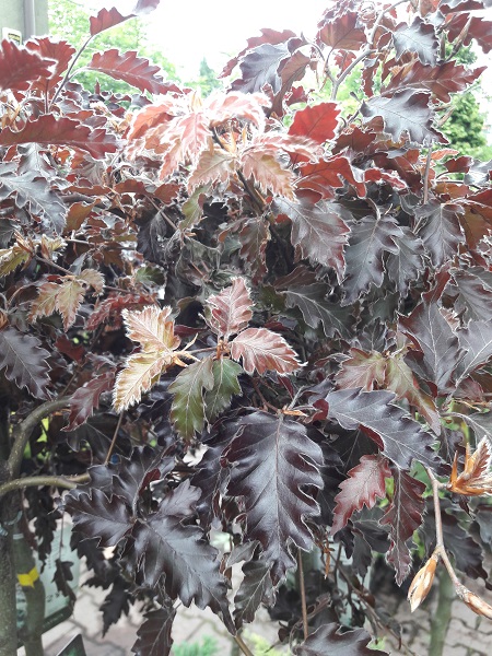Druga myśl: może klonik palmowy czy japoński, jakiś bordowy dla kontrastu z borówką i (po)liliowymi badylami... tylko, czy są takowe z preferencję rośnięcia wzwyż a nie wszerz? Acz tu ewentualnie można by ciąć i formować
