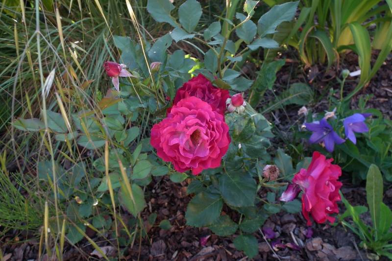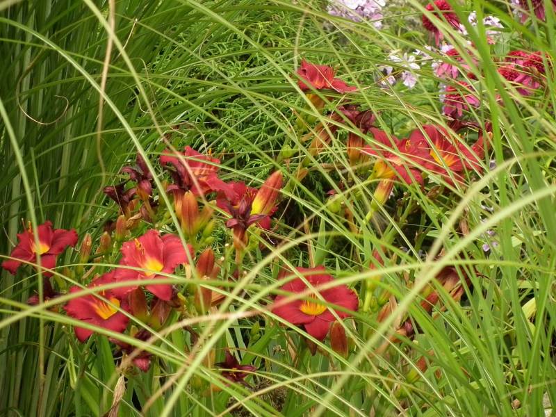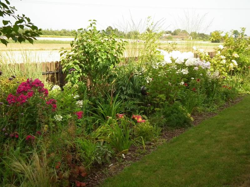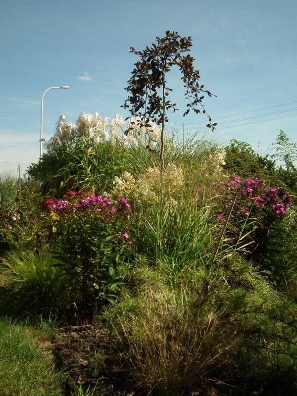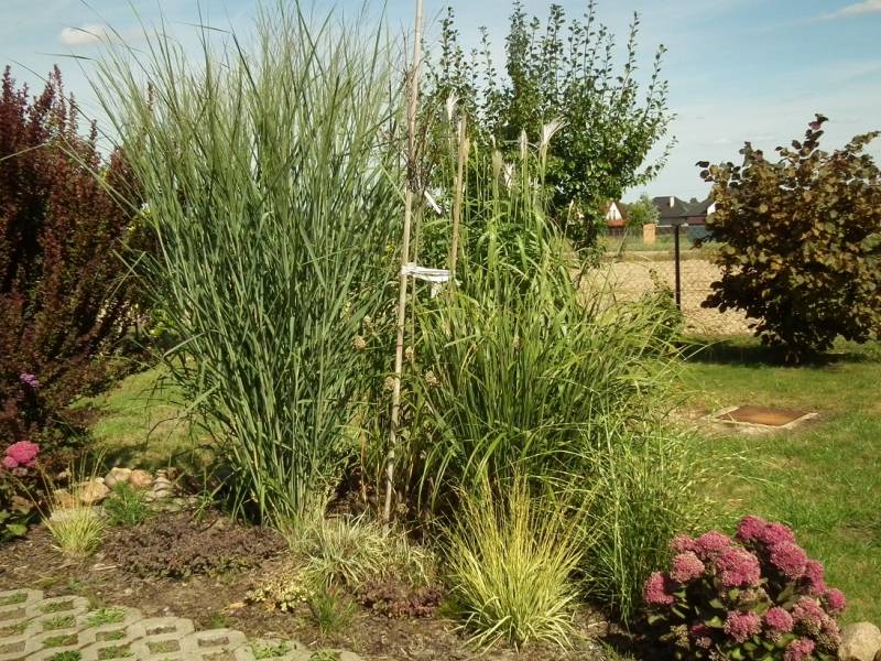 A to jest rabata na której Memory miał robić za tło dla innych traw, a tu proso Heavy Metal przerosło miskanta( nie zwracajcie uwagi na uschniętego klona do wymiany wiosną bo za bardzo chciałam go uchronić przed zjedzeniem mu liści przez chrabąszcze to załatwiłam go na amen dobrze że tylko jego inne drzewka jakoś sobie poradziły)