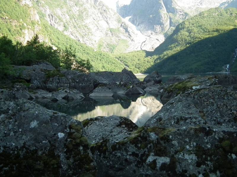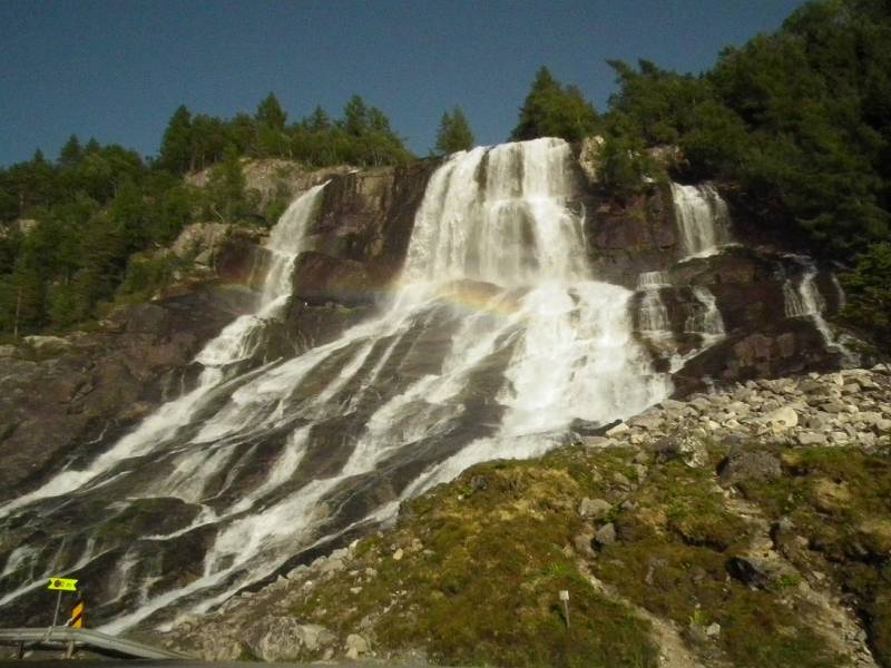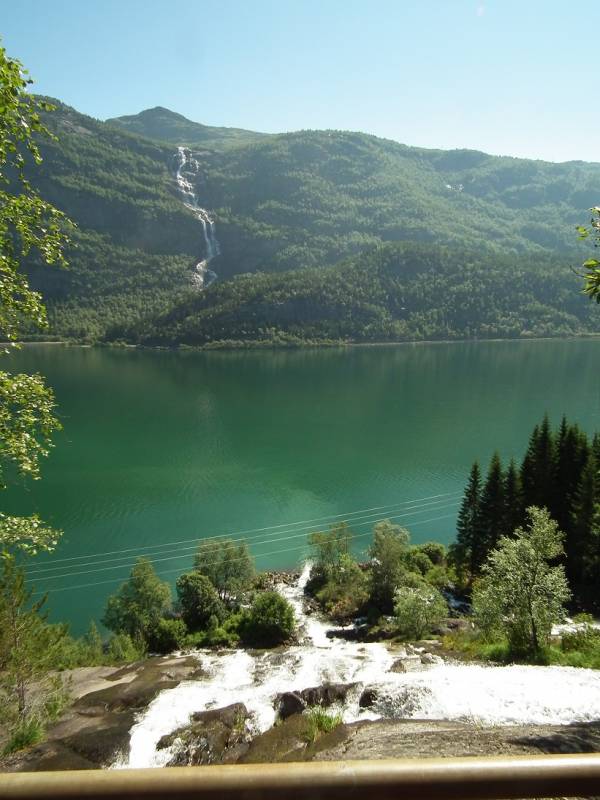 Żanetko, Nelu, Gosiu, Ewo Elu, Ino bardzo dziękuję Wam za wizytę i miłe słowa. Jesienny ogród czasami pięknie wyglądał zimowe dni takie jak teraz ze śniegiem też są ładne ale już z utęsknieniem oczekuję wiosny i lata. Pomalutku snuję wiosenne plany ale czy uda mi się coś zrealizować to czas pokaże, postaram się o nich też na bieżąco pisać. Na dzień dzisiejszy nie mam żadnych ogrodowych fotek, bo wcale ich nie robię ale kiedyś obiecałam że w zimie zdam relację z mojej wycieczki do Norwegii. Jak już pewnie pisałam mieszkaliśmy na kempingu w Oddzie. Kemping położony nad jeziorem Sandvinvatent pomiędzy Parkami Narodowymi Folgefonna i Hardangervidda. Zaś sama Odda to małe miasteczko nad fiordem. Ponieważ lądowaliśmy w Oslo to przez całą noc jechaliśmy do Oddy, tam odsypianie i pierwsze zwiedzanie miasteczka a wieczorem zrobiliśmy sobie krótką wycieczkę po górach obok kempingu
