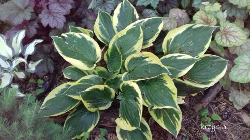 Hosty towarzyszyły mi od zawsze, u mamy rosły potężne kępy undulaty, przytargałam jej kawałek do siebie, potem było kilka następnych, najbardziej popularnych w pobliskich ogrodniczych S&S, Blue Angel, a kiedy otrząsnęłam się po przejściach zaczęłam zmieniać co się dało. Część roślin przetrwała trudne lata, niektóre pochodzą jeszcze ze starego ogrodu teściowej i jej siostry, trochę dostałam, dokupiłam i tak powstaje mój wymarzony zielony zakątek.