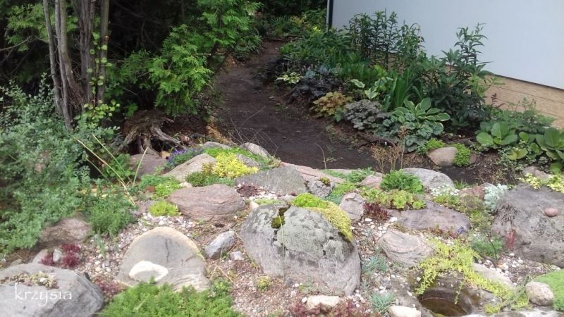 Od dziecka uwielbiam też skalniaki, mieliśmy przy szkole piękny, duży ogród skalny, co prawda w latach siedemdziesiątych ub.w. nie było dostępnych tylu roślin jak dziś, ani takich możliwości, ale nasze alpinarium założone zostało przez wielkiego pasjonata i uwielbialiśmy się tam włóczyć na przerwach. Mały skalniak miałam przy domu rodzinnym, mam też i tu. Nie jest imponujący, ale mam nadzieję, że z czasem uratuje najgorsze miejsce w ogrodzie, tuż przy bramce, suche, piaszczyste, słoneczne.