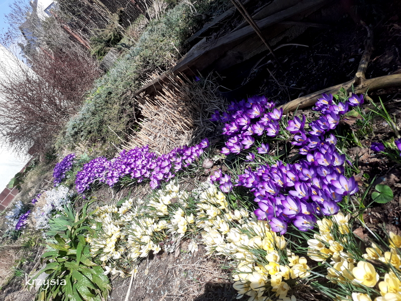 . W tym roku jakby mniej dziurawych host, ale te zdjęcia to z 'wyspy' na środku ogrodu, tam ślimakom trudniej się przedostać, ścieżka jest sucha, na rabatach pod płotem jest ich sporo. Przed wycięciem świerków, na tej środkowej, płożył się bluszcz i barwinek, miały schronienie, a teraz wiosną, zanim hosty ruszą, jest tam pusto i chyba dlatego mało szkód. Poza tym u mnie głównie te w muszlach, czasami gdzieś w kącie pomrowy żerują, nie ma tych okropnych rudych.