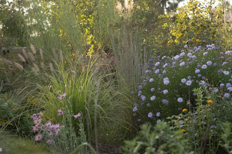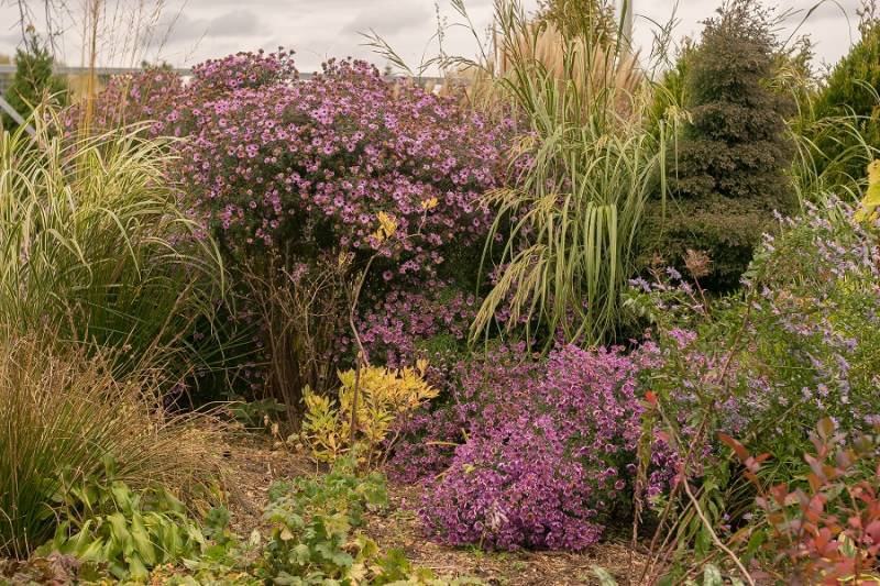 Wokół sosny powstała lekko podwyższona półcienista rabata. Tu parzydło paprocie, rodgersje, saruma, epimedium. Może odżyje rodek smirnovi, który jeszcze nigdy nie kwitł.