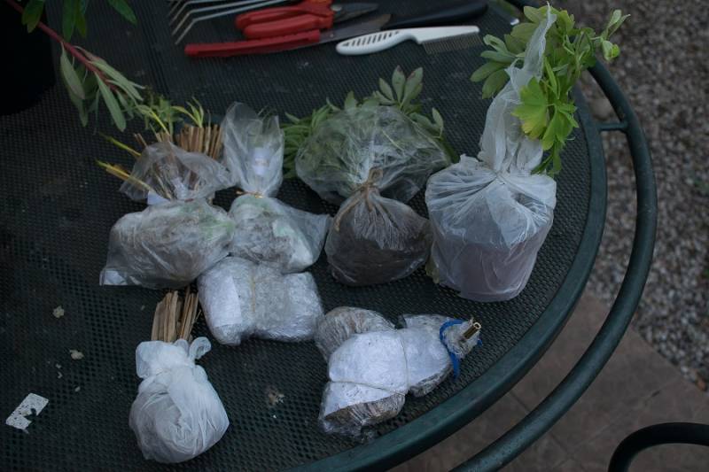 Przypomniałam sobie o zakupionych łubinach w kapersach, na szczęście zachowały się w niezłej kondycji jak na miesięczne przebywanie w torebkach foliowych z torfem. Zadoniczkowałam je tymczasowo do wyjazdu na wieś.