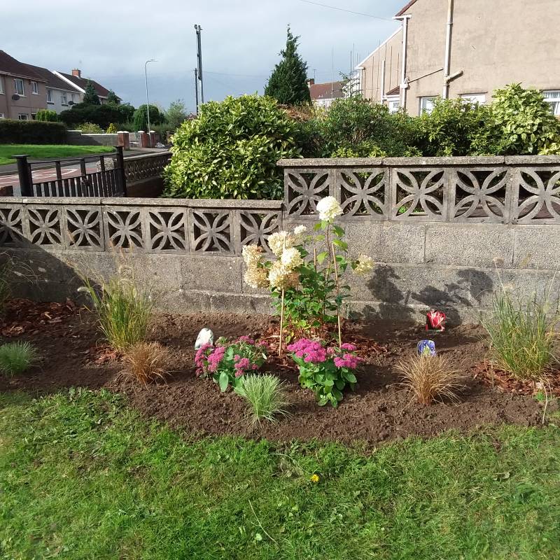 Witajcie Kochani. Ja tylko na sekundke. Było akurat kilka promykow słonca więc zrobiłam fotki z postepow na mojej rabatce. To jeszcze nie koniec oczywiscie. Co rusz coś przesadzam, przesuwam. Jak widzicie musiałam ją trochę powiekrzyc i uszczknac jeszcze trochę trawnika. Niestety jezowek już nie było także puste miejsca wypelniam cebulkami w koszyczkach żeby łatwo potem było wykopac. W przyszlym roku dosadze jeżówki i na razie nie wiem co jeszcze. Zobaczymy.