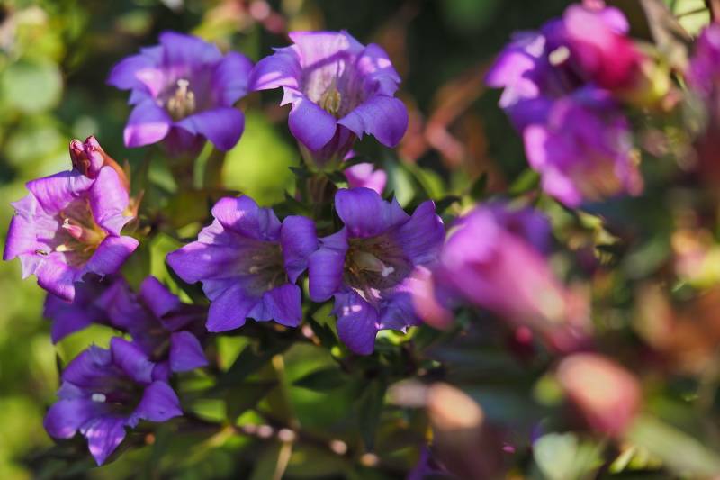 Nawet niezawodna goryczka acaulis w tym roku prawie nie kwitła choć jest całkiem rozrośnięta. Uroczo za to zakwitał gentiana hybrida