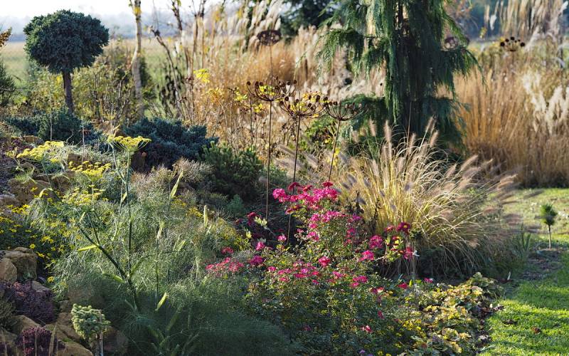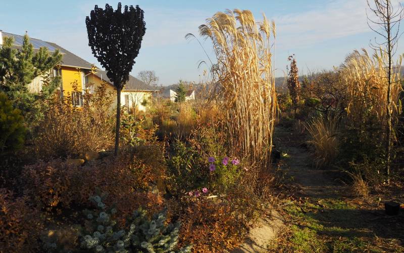 Elu skalniak na początku był faktycznie najważniejszy i najbardziej charakterystyczny. Teraz jednak ogród trochę dojrzał, urosły pozostałe rośliny i skalniak siłą rzeczy wtopił się w otoczenie.