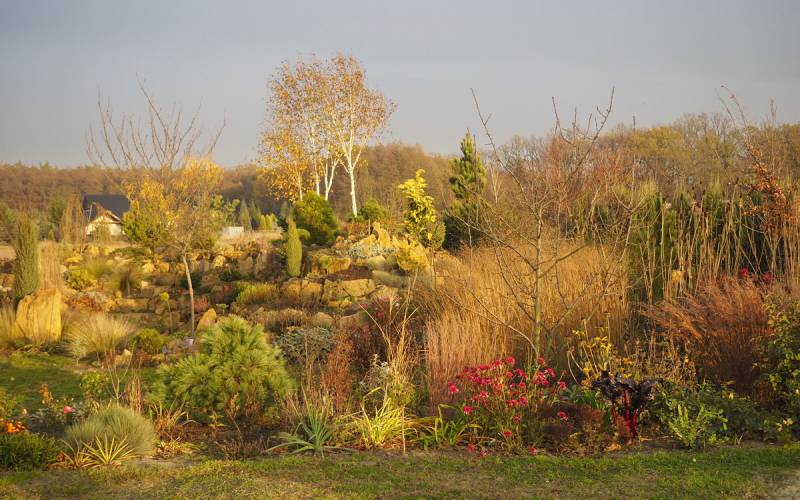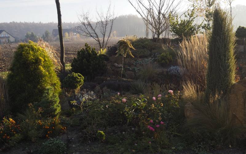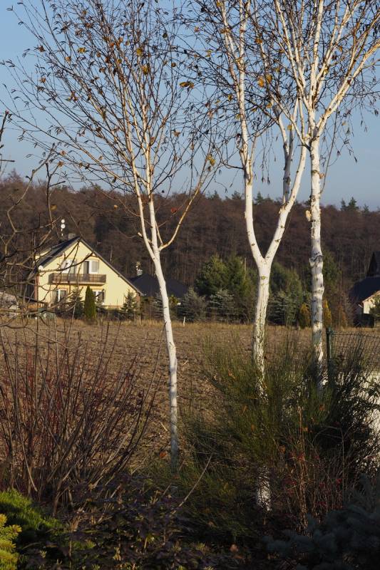 Majko ja moje duże drzewa posadziłem tak by minimalizować zacienienie działki. Platan i Metaskewoja rosną w zachodnim narożniku działki