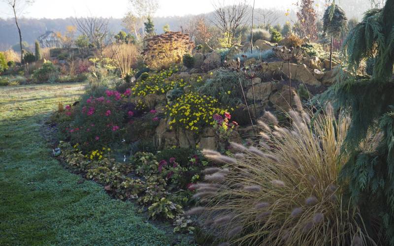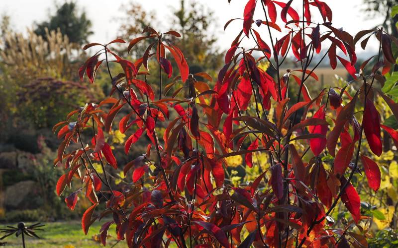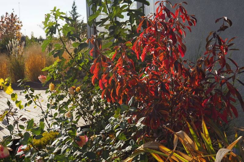 Przebarwiła się ślicznie i długo trzyma te kolorowe liście. Do tego bardzo późno kwitnie więc efekt jesienny jest oszołamiający. Z roku na rok jest większa więc robi coraz lepsze wrażenie.