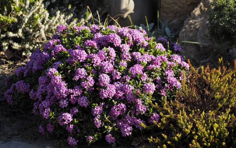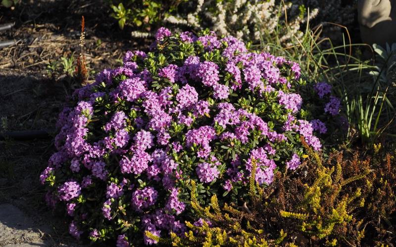 Daphne collina) Ma wygląd i pokrój miniaturowego rododendrona ale jest bardzo odporny na suszę i słabe warunki glebowe.