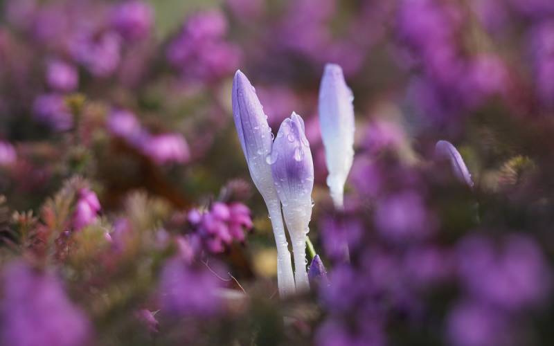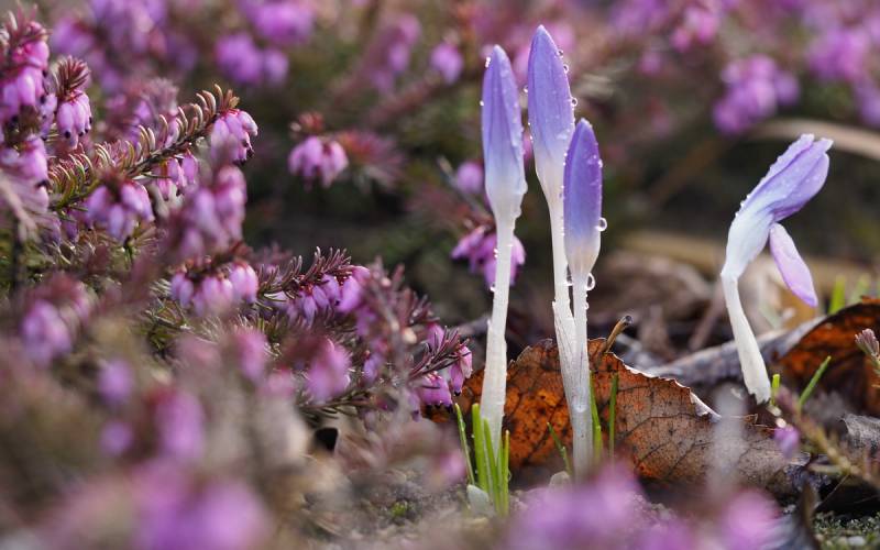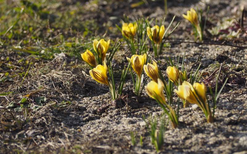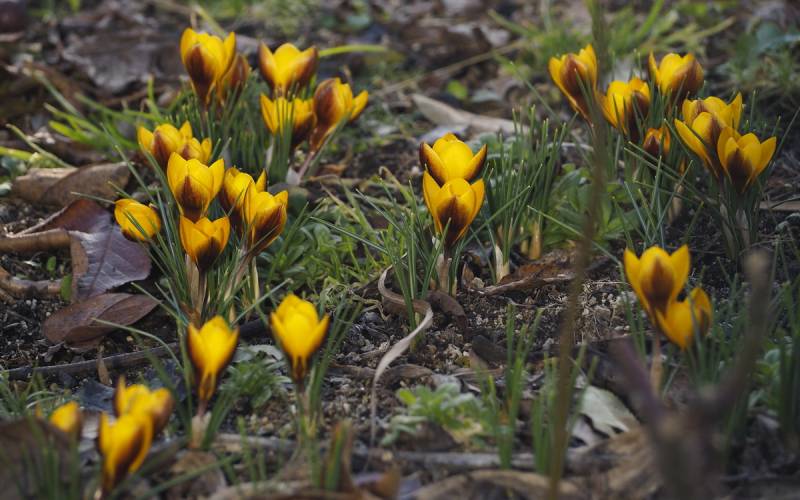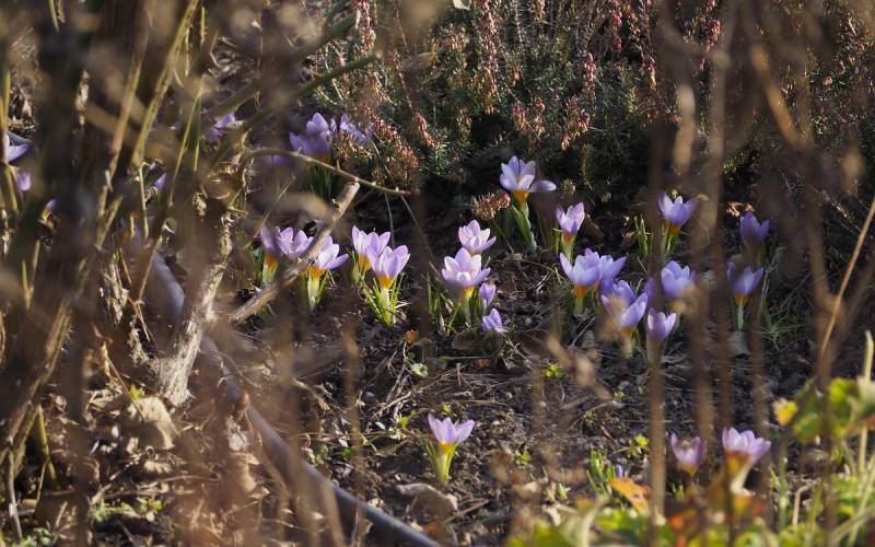 Oprócz oczarów kwitną też krokusy. Uzbierało się ich chyba z 30 odmian ale i tak w większości wyglądają łudząco podobnie. Więc chciałoby się rzecz "po co przepłacać".
