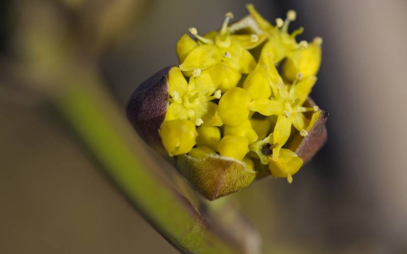 Zaczynają też kwitnąć moje drenie jadalne (foto 06.03.2019r.). W zeszłym roku podjąłem radykalne działania i wykopałem dwa wyprowadzone już na spore drzewka egzemplarze.